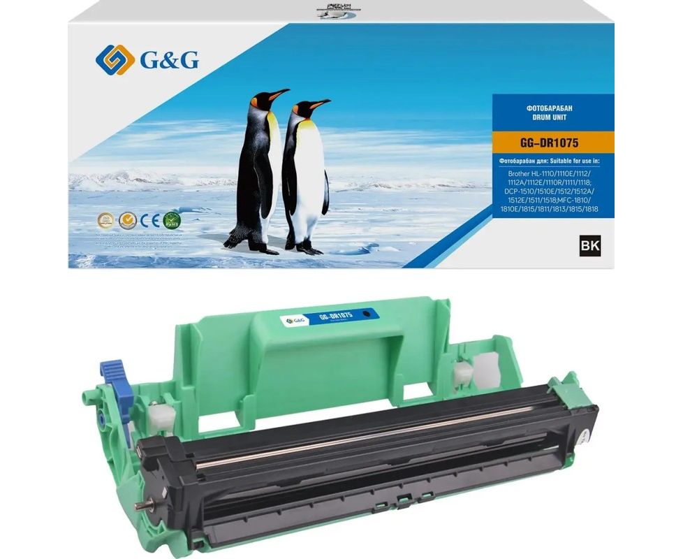 Блок фотобарабана G&G GG-DR1075 DR-1050/DR-1060/DR-1070/DR-1000 черный ч/б 10000стр для HL-1110/1110E/1112/1112A/1112E/1110R/1111/1118;DCP-1510/1510E