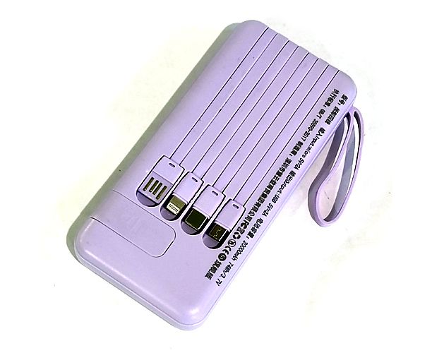 20W Fast Charging. Dual Output Power Bank, ёмкость батареи: 10 000 мАч, тип батареи: Li-Polymer, выход 5В 2А, размеры: 150х70х20мм, индикатор заряда, цвет фиолетовый, материал корпуса: пластик.