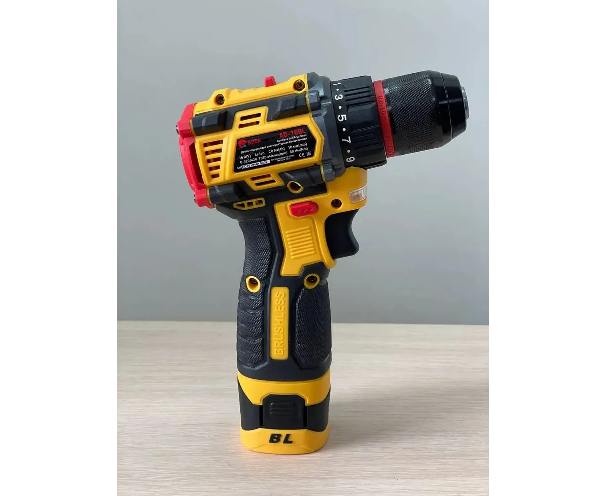 Дрель-шуруповерт аккумуляторная Edon AD-16BL бесщеточная - это мощный и удобный в использовании аккумуляторный инструмент, имеющий бесщеточный двигатель, который обеспечивает эффективность работы и длительный срок службы. Предназначена для сверления отверстий и закручивания или откручивания различного крепежа. Устройство оснащено литий-ионным аккумулятором с емкостью 2,0 А.ч., который обеспечивает длительное время работы без необходимости подзарядки. AD-16BL имеет две скорости вращения и реверсивную функцию, что позволяет быстро и легко менять режимы работы в зависимости от задач.