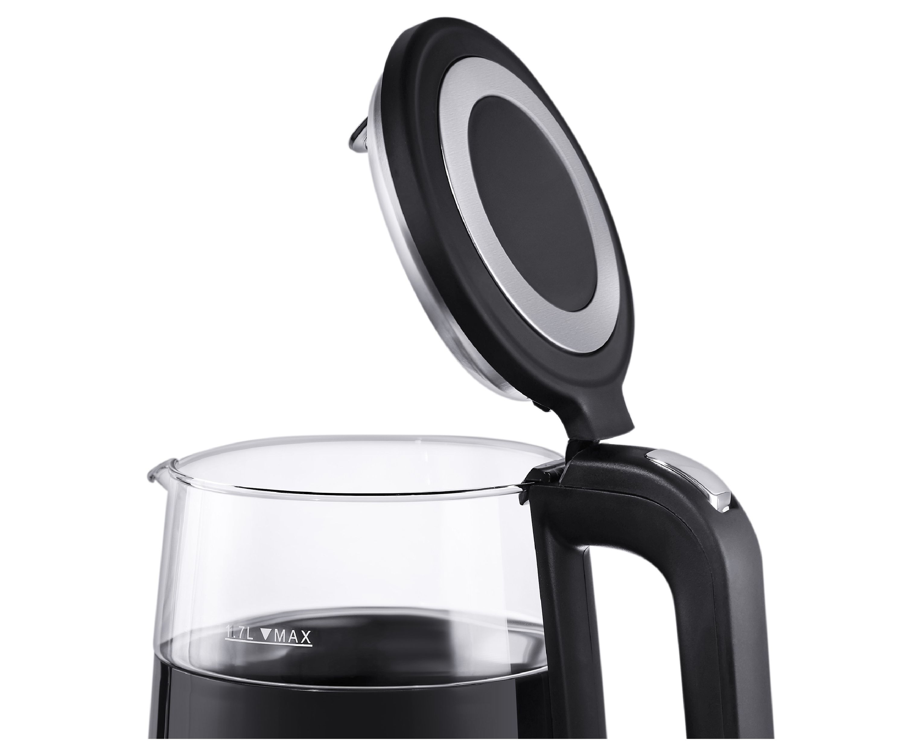 Корпус с двойными стенками из цельной стеклянной колбы и высококачественного пластика снаружи – позволяет чайнику разогревать воду быстрее и работать как термос