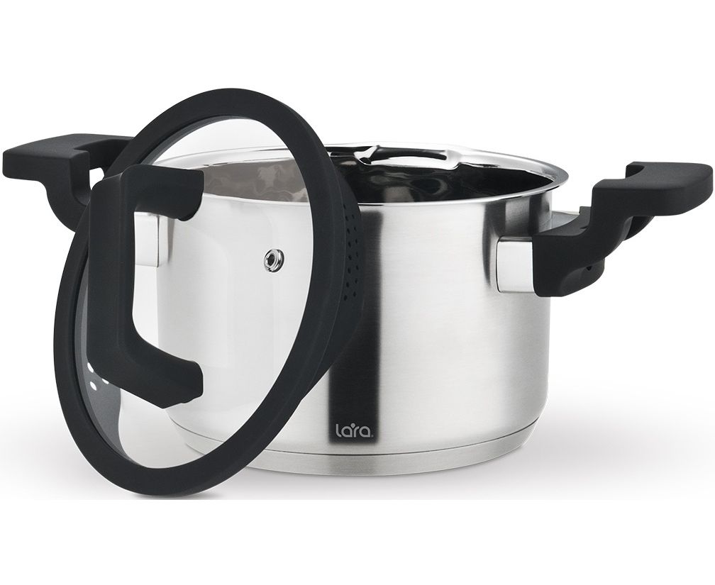 Кастрюля LARA LR02-290 нерж Премиум 16x10,5см 2.1л, индукционное дно, все типы плит, Soft-touch