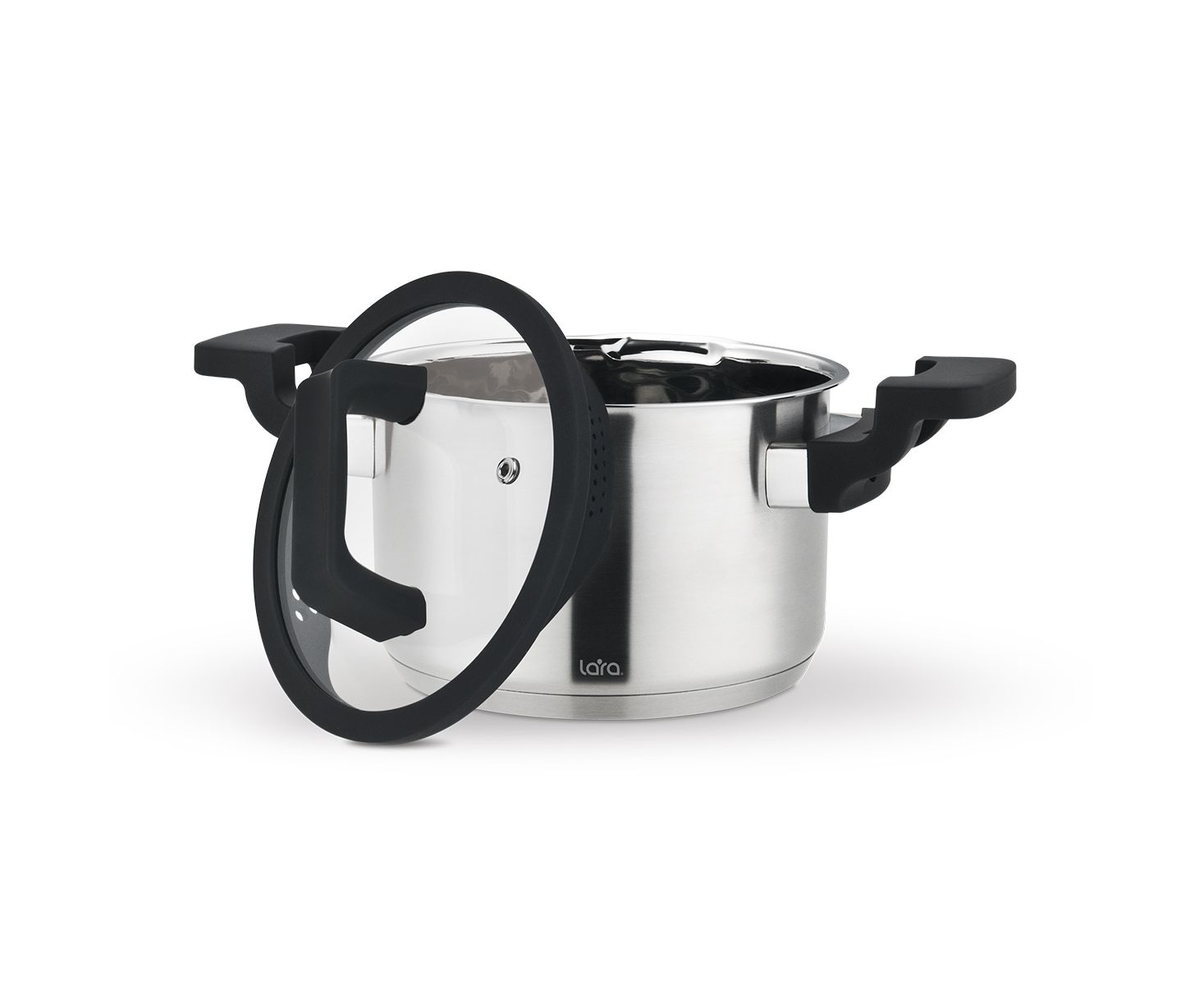 Кастрюля LARA LR02-293 нерж Премиум 22x13,5см 5.1л, индукционное дно, все типы плит, Soft-touch