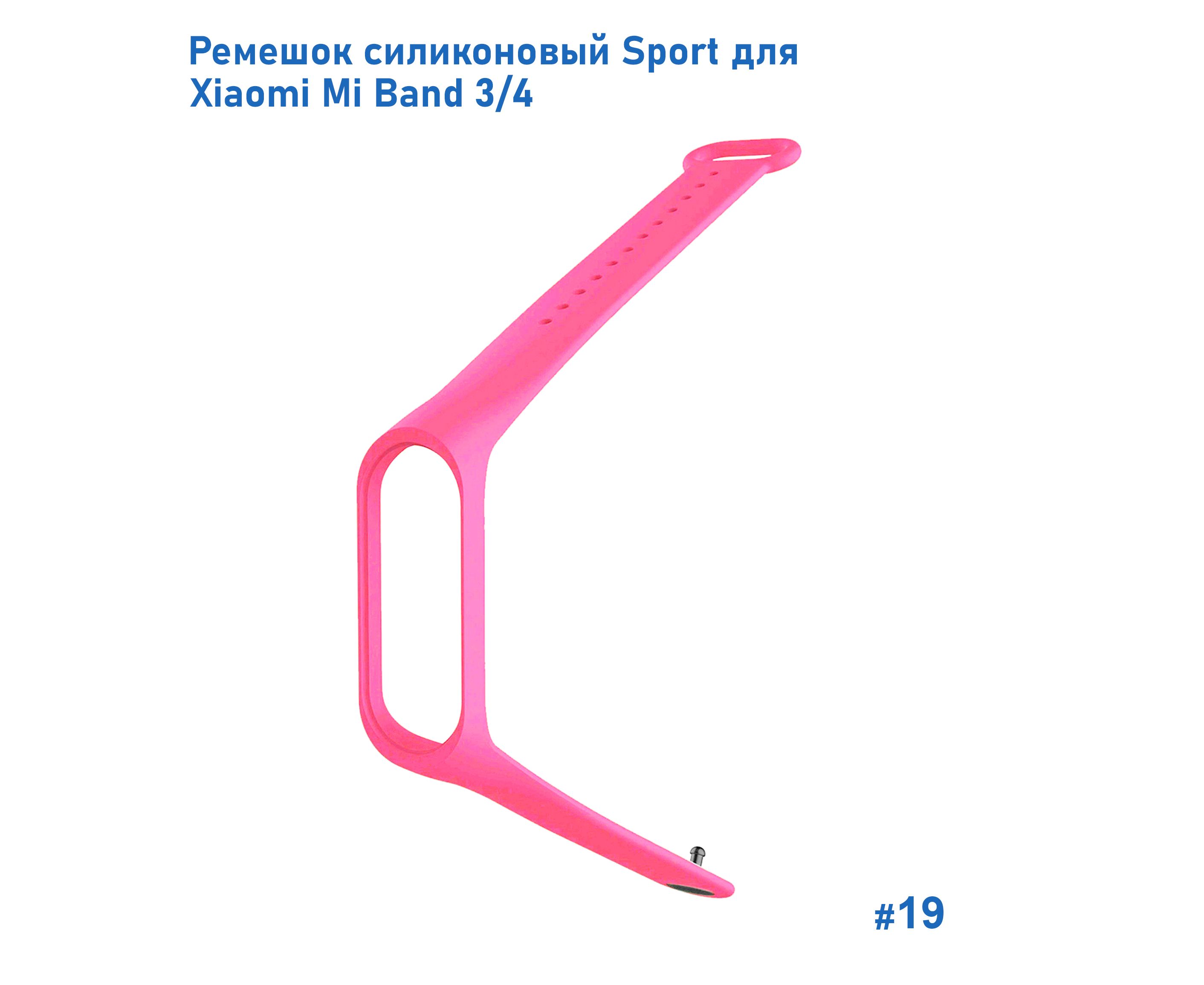 Ремешок силиконовый для Xiaomi Mi Band 3/4 (19), ярко-розовый, на кнопке