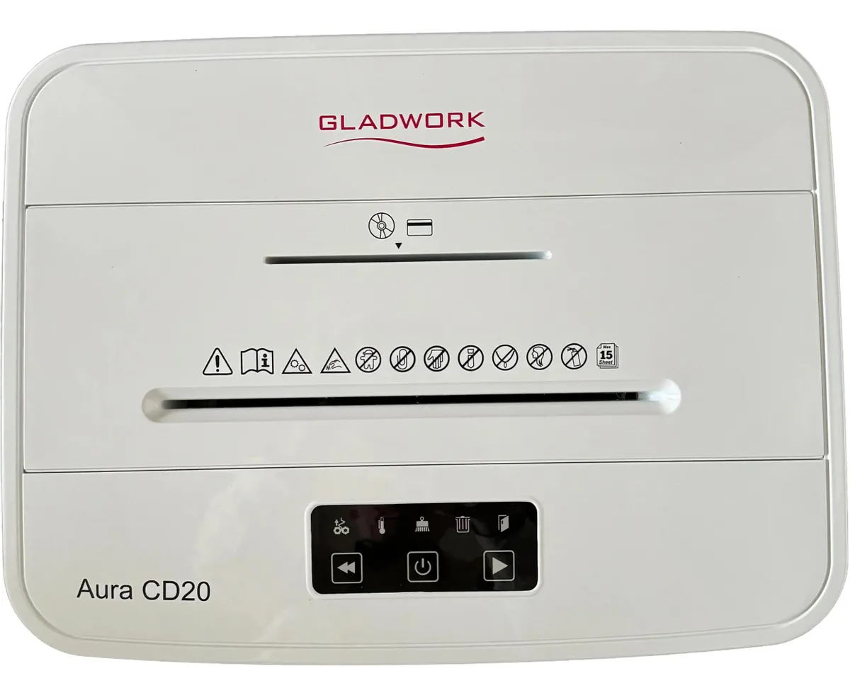 Шредер Gladwork Aura CD20 серый (секр.P-4) фрагменты 20лист. 25лтр. скрепки скобы пл.карты CD