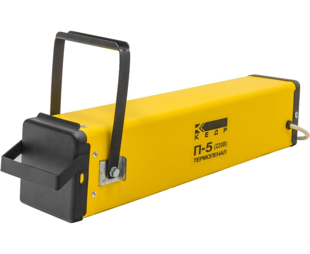Термопенал 220В, 150C, загрузка 5кг КЕДР П-5 8007886 применяется на строительных площадках и вблизи проведения объемных сварочных работ. Небольшое по размерам и весу устройство обеспечивает подогрев и хранение электродов. Прочный металлический корпус с надежной термоизоляцией обеспечивает стабильную температуру внутри. Металлический замок прижимает крышку. Имеется функция автоматического поддержания температуры в течение длительного периода времени. Металлический зажим надежно закрепляет крышку пенала КЕДР П-5 8007886 для защиты от выхода тепла за пределы устройства.
